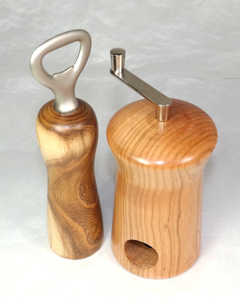 Mit der Hand gedrechselte Küchenwerkzeuge aus Hölzern der Region: Birke, Buchsbaum, Buche, Essigbaum, Goldregen, Kirsche, Nussbaum, Pflaume, Robinie