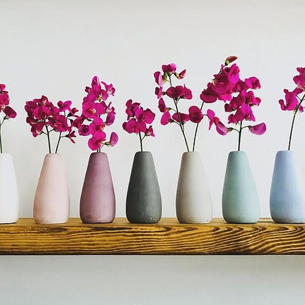 Gebrauchsgegenstände aus Beton in zarten Farben und mit minimalem Zementanteil; auch zerkleinerte Produkte 2. Wahl werden oft wiederverwendet