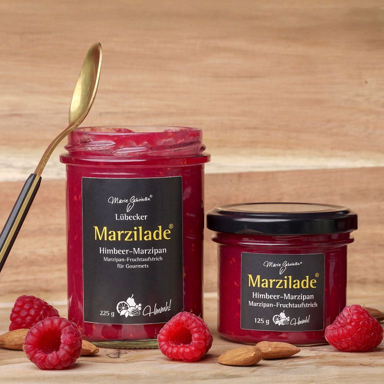 Brotaufstrich aus Marzipan aus spanischen Mandeln mit Frucht von regionalen Höfen; OHNE Geschmacksverstärker, Palmöl, Konservierungs- und künstliche Farbstoffe und Aromen
