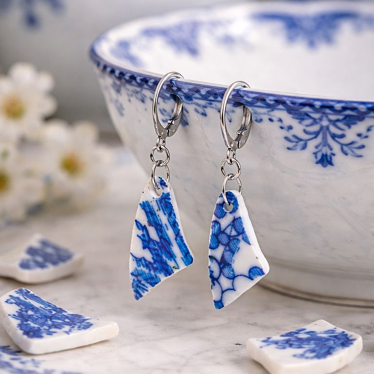 Scherben bringen Glück, auch wenn mal etwas schiefgeht: Ohrringe aus Porzellanbruch an hypoallergenen Edelstahl-Brisuren, Scherben = Unikate