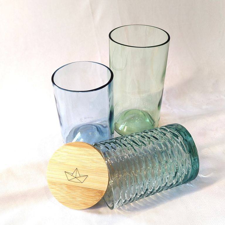 Upcycling Glas - die 2. Chance für alte Flaschen, mit der Hand geschliffen: Vasen, Karaffen, Trink-/Vorratsgläser, Schalen: Upcycling in Vollendung